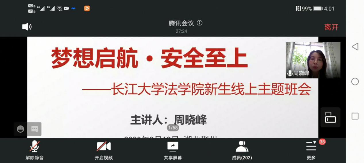 (通讯员:王怡然)9月12日下午,77779193永利官网召开2020级新生线上主题班会。本次班会以“梦想启航 安全至上”为主题,旨在为新生来校报到做好准备。本次班会由2020级辅导员周晓峰老师主讲,学院党委副书记胡红霞、辅导员盛文军及全体2020级新生参加。