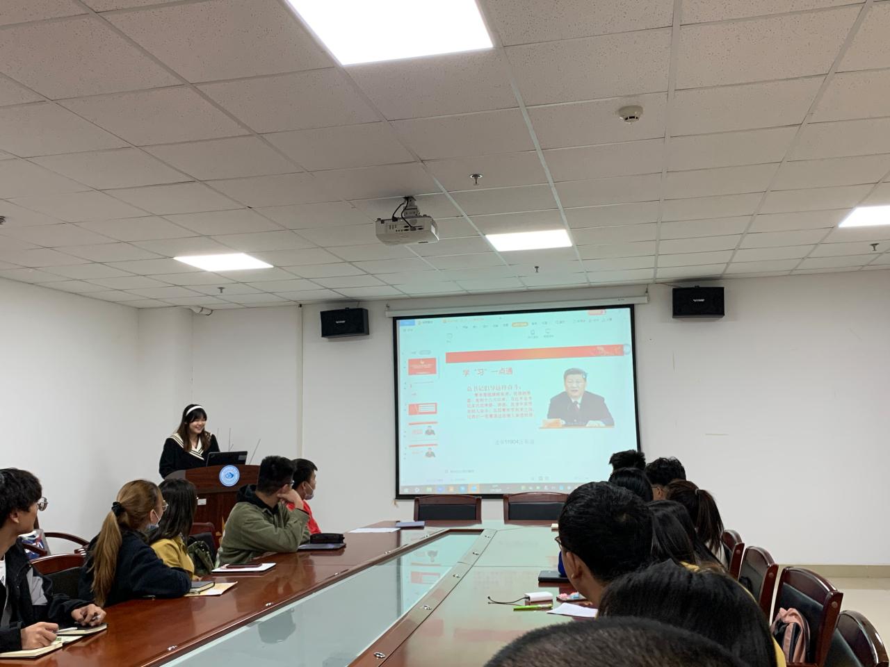 最后,辅导员周晓峰老师总结发言指出:“青年兴则国兴,青年强则国强。青年一代有理想、有担当,国家就有前途,民族就有希望,实现我们的发展目标就有源源不断的强大力量。希望同学们潜心研学,将知识内化于心,外化于形,以知识武装头脑,勇敢肩负起时代赋予的重任,志存高远,脚踏实地。”