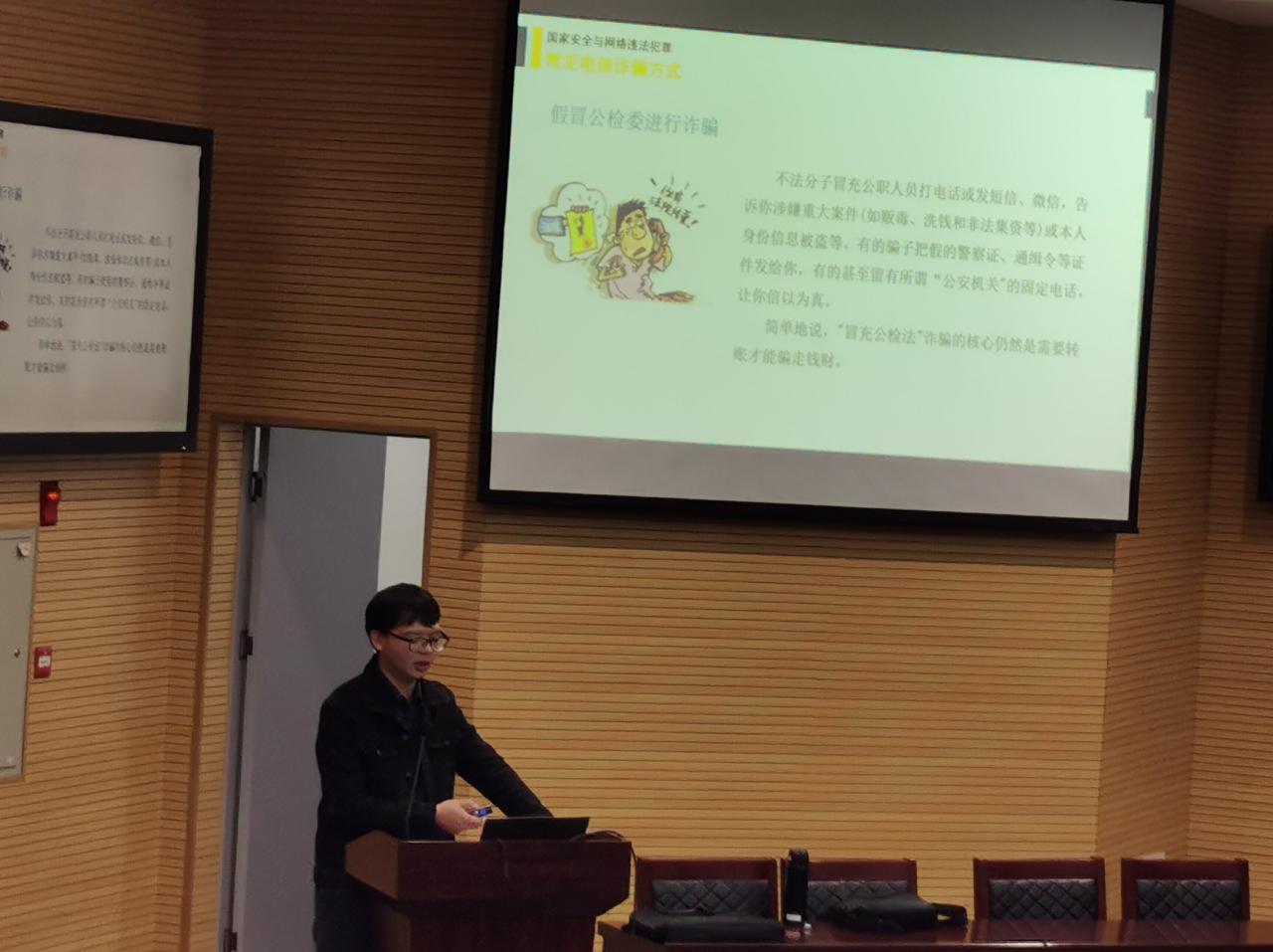此次讲座主题分为考试安全、预防校园贷与金融安全、国家安全与网络违法犯罪、实习与社会实践安全和体育运动安全五大类。首先,杨老师对考试安全作出诠释,通过两个本校案例着重强调了考试诚信与考试安全。告诫同学们要诚信考试,做诚信文明大学生。随后,杨老师重点强调了预防校园贷与金融安全问题,通过多个案例,让同学们看清非法校园贷的“黑爪”,认识非法校园贷的严重后果。在国家安全与网络违法犯罪方面,杨老师指出当前威胁国家安全的诸多因素,大学生对国家安全应有充分理解,并呼吁大学生树立国家安全意识,提升维护国家安全的能力。最后,杨老师还介绍了永利官网的一些实习与实践活动,通过身边案例让同学们牢记惨痛教训。在体育运动安全方面,杨老师提醒同学们注意安全运动、健康运动。