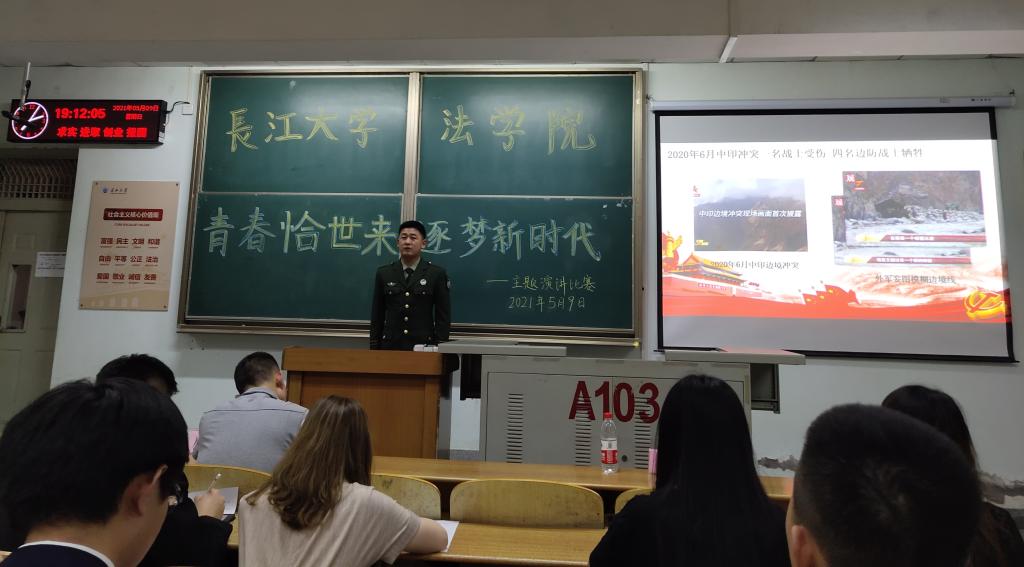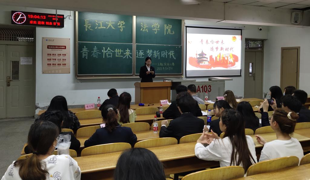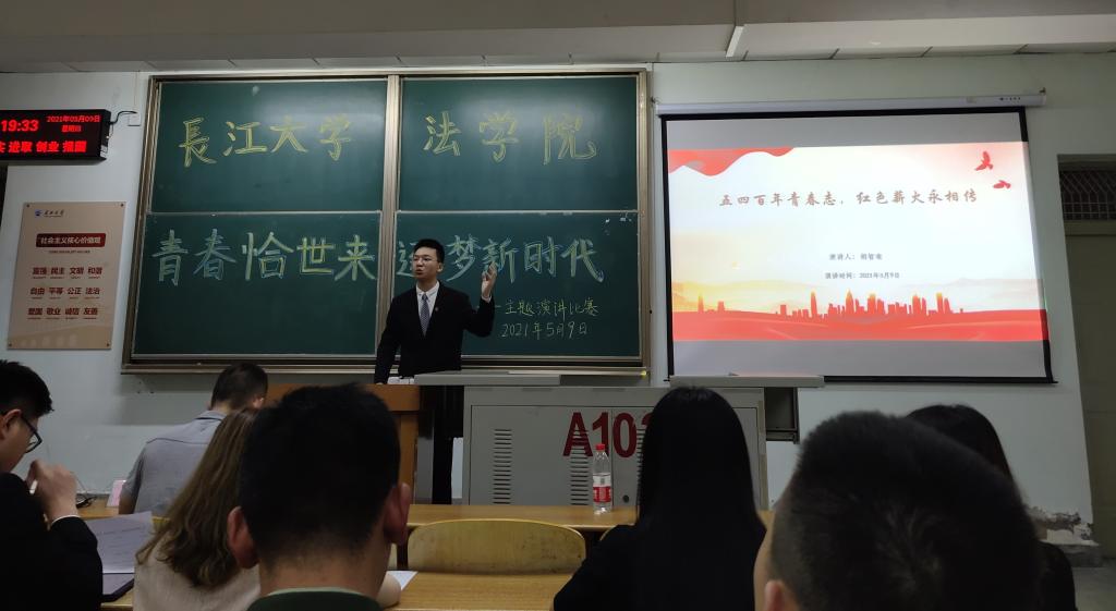 (通讯员:雷瑞婷)五四精神,传承有我。值此青年节之际,永利官网5月9日晚七时于东校区13教A-103教室举办“青春恰世来,逐梦新时代”主题演讲比赛。本次比赛由法学11901班徐程同学主持,党委书记周胜美、辅导员周晓峰、盛文军老师参加本次活动。