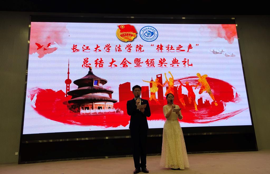 (通讯员 陈婉莹)学党史感党恩,争做时代新人。5月23日晚七时,学院在农科大楼1058报告厅举办了“律社之声”总结大会暨颁奖典礼,党委书记周胜美、副书记胡红霞、辅导员周晓峰、盛文军老师参加活动。本次活动由法学11901班田博文、徐程同学担任主持。