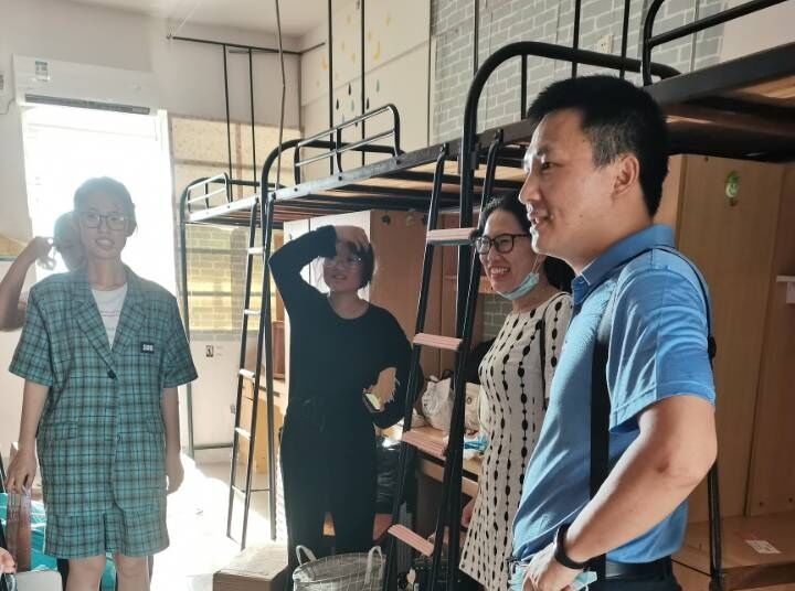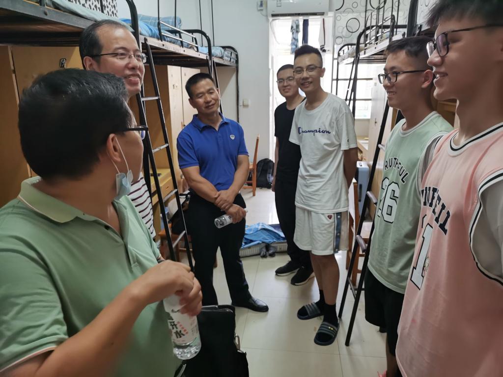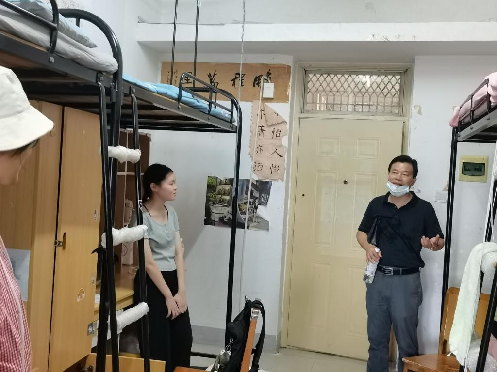 (通讯员:秦一凡)9月4日,77779193永利官网2021级新生正式报到。为了拉进与同学们之间的关系,了解新生住宿情况,学院党委书记周胜美、院长李华成、副院长彭泽君、副院长唐飞、党委副书记胡红霞,新生班主任和年级辅导员带领志愿者到访新生寝室。