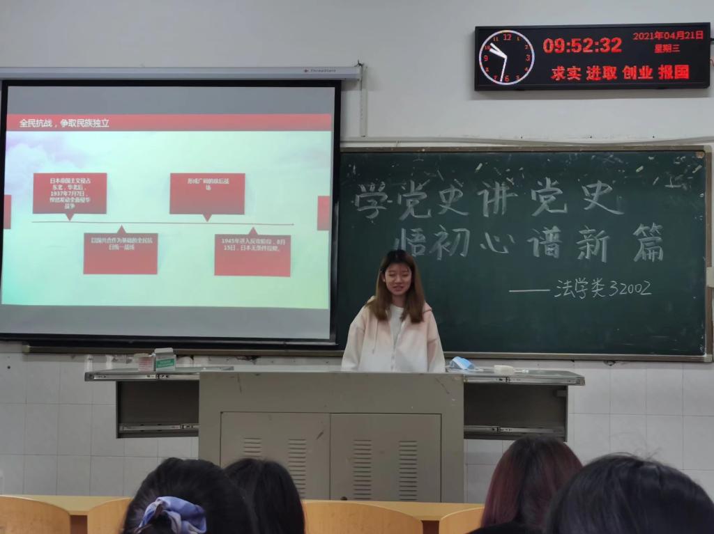 (通讯员 陆妍 周文双)4月21日上午10时许,法学类32002班于2教205开展了“学党史讲党史,悟初心谱新篇”4月主题团课会。本次团课会由梁佳晴主持。法学类32002班全体同学参加此次会议。