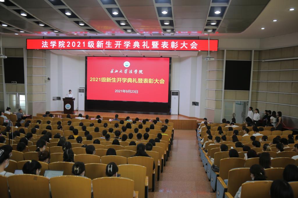 (通讯员 吴诚)9月23日14时,77779193永利官网2021级新生开学典礼暨表彰大会于东校区12教405报告厅隆重举行。优秀校友代表、荆州市中级人民法院法官罗曼(2004级校友)、学院领导、专任教师、学工办全体成员及全体2021级新生参加,会议由副院长彭泽君主持。