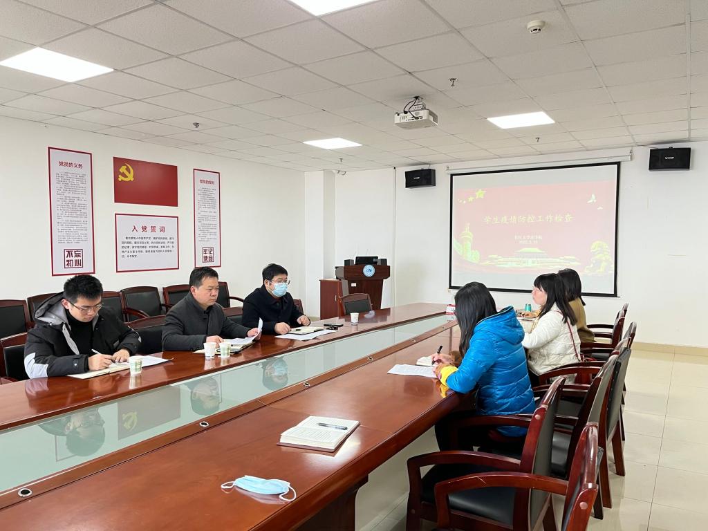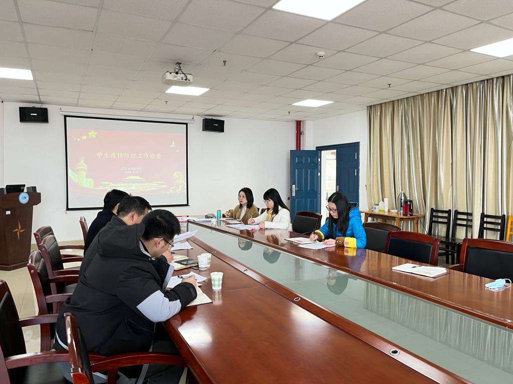 徐部长从学生返校、毕业年级考研、学生就业现状及学生心理状况等方面了解工作落实情况,随后仔细查看了疫情防控台账,他强调疫情防控工作,思想上要高度重视,加强纪律要求,持续做好学生每日三次体温监测,做好延迟返校学生的请假工作,重点关注考研学生的心理变化。针对学院学生工作中遇到的困难和问题,学工部现场给出了答复。