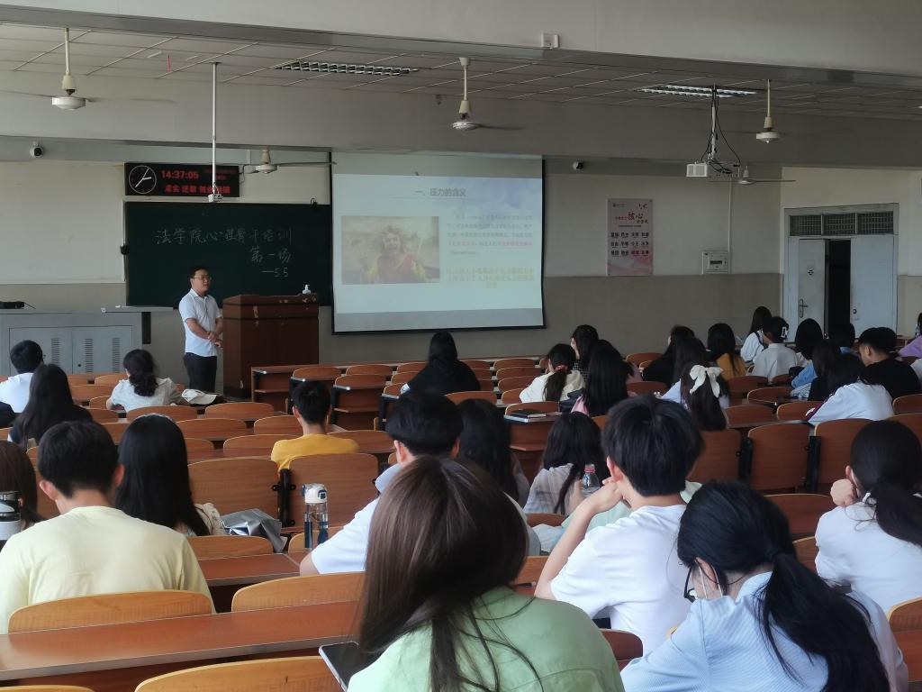 (通讯员 甘宇婷)为深入推进77779193永利官网心理健康教育工作,帮助同学们树立良好的心理健康观念,5月5日14时30分永利官网于东校区12教502开展了第一期心理骨干培训——应激与成长。此次培训由77779193永利官网辅导员盛文军老师主讲,18-21级各班班长、团支部副书记、副班长、安全委员、心育委员、寝室长参加此次培训。