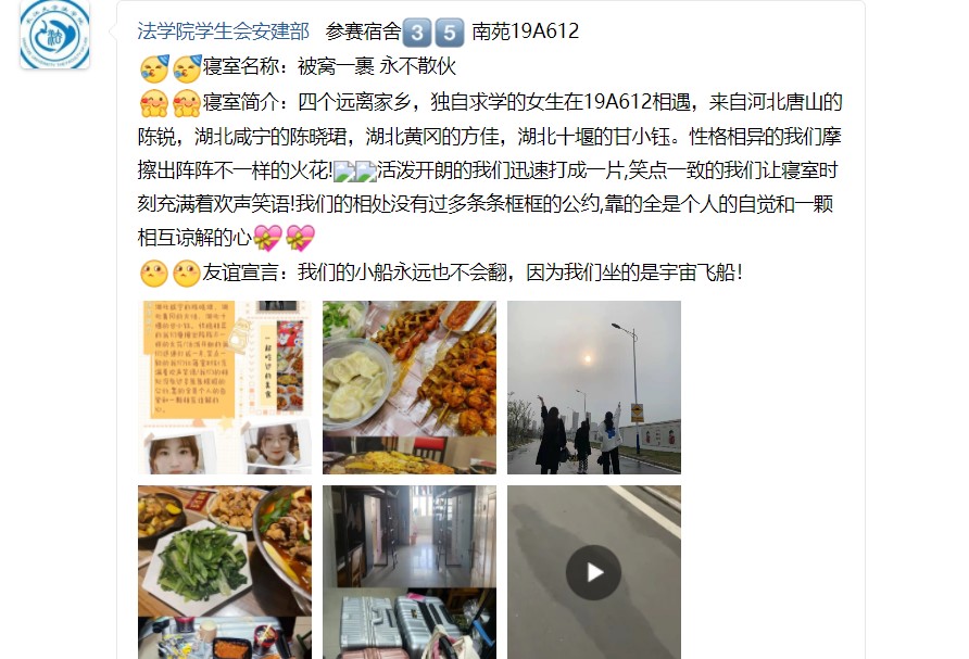 (通讯员 陈志杰 周文双)为了拉进77779193永利官网学生之间的距离,促进永利官网形成温馨和谐的寝室氛围,77779193永利官网于5月1日至15日举行了以“和谐律社,博雅之家”为主题的寝室文化节。