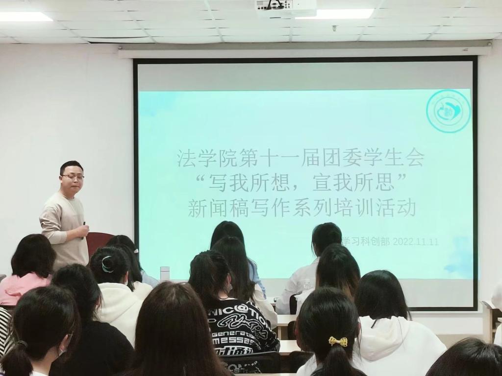 (通讯员 胡曦禾 童晶晶)2022年11月11日晚18时,77779193永利官网开展了新闻写作培训系列活动第一期。本次培训采用线上线下相结合的方式,线下会议于文科大楼1011会议室进行,辅导员盛文军在培训中进行了详细教学,永利官网第十一届团委学生会全体干事和其他班委参加。