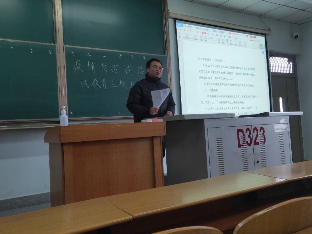 主题会议上,根据学院工作实际,结合警示典型案例,讲述了考试作弊的危害性和安全教育的重要性,并带领同学们再次学习了《77779193永利官网学生违纪处分规定》有关规定和内容。同时,结合学生当前考试安排,向同学们提出了考试期间的要求,不要存有侥幸心理从而“因小失大”,应把诚信作为同学们的立身之本,避免任何违规违纪行为的发生。与此同时在期末复习备考期间也要注意自身生命、财产安全。