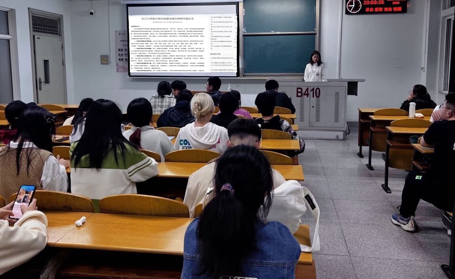 “我们的一言一行都代表着荆州的城市形象,文明创建的路上离不开大家的支持与参与。”由各班班委组成的学习小组在文科大楼1110会议室集中学习了《77779193永利官网助力荆州创建全国文明城市倡议书》,会上,学院团委书记雷礼老师呼吁全体同学立即行动起来,从点滴小事做起,规范文明行为,树立文明形象,维护城市荣誉,为荆州市创建全国文明城市争光添彩。