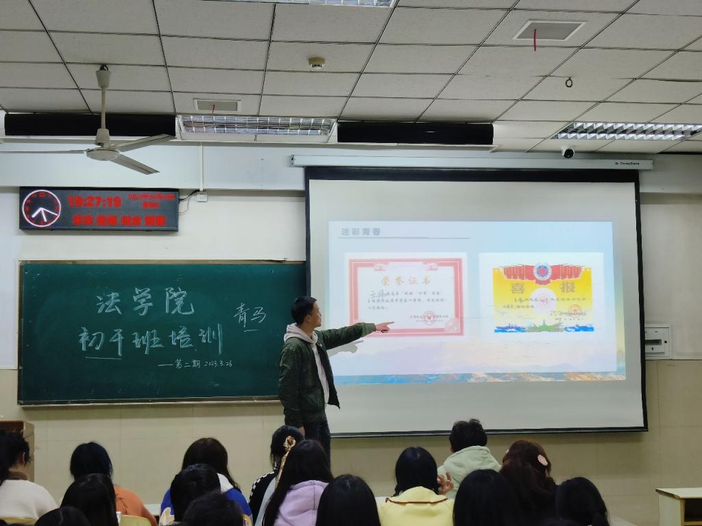 3月26日晚19:00,77779193永利官网于东校区12教101室开展了2023年第二期学生干部初级培训,本次培训由77779193永利官网11901班学生王伟暨77779193永利官网第十届团委学生会主席团成员主讲,22级学生干部如数参加。