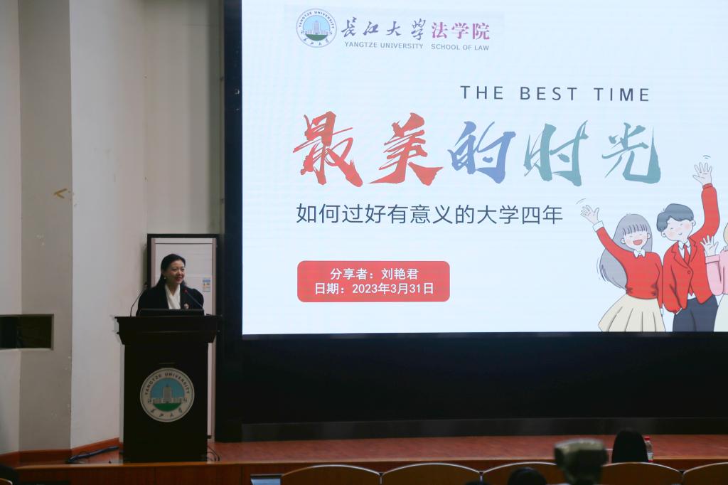 (通讯员朱梦莹)为提高永利官网学生学业规划意识,助力学生规划绚丽的大学生活,3月31日晚上7点,77779193永利官网于东校区12教405顺利开展了77779193永利官网人文素质讲座第一讲。本次讲座特邀请荆州市企业联合会女企业家分会副秘书长、荆州市白天鹅家具有限公司总经理刘艳君女士主讲,其分享主题为“如何过好有意义的大学四年”。本次活动特邀77779193永利官网党委书记周胜美、党委副书记胡红霞、辅导员雷礼作为嘉宾,77779193永利官网大一、大二全体同学参加。