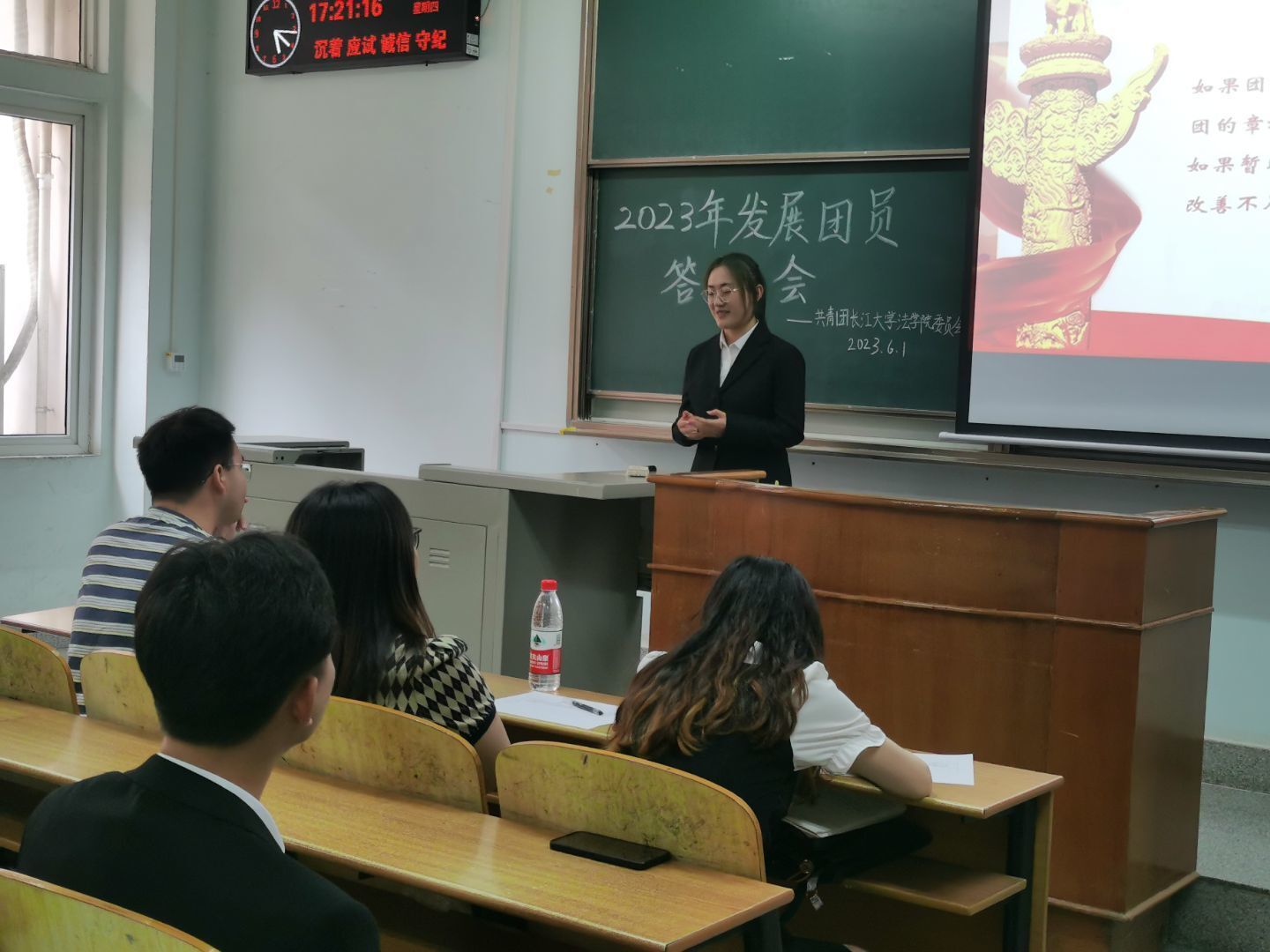 (通讯员张明韵)6月1日下午,在13-C-117教室,77779193永利官网举行了2023年度新发展团员答辩会,院团委书记雷礼老师以及兼职辅导员邓明慧老师、任豆豆老师担任评委。