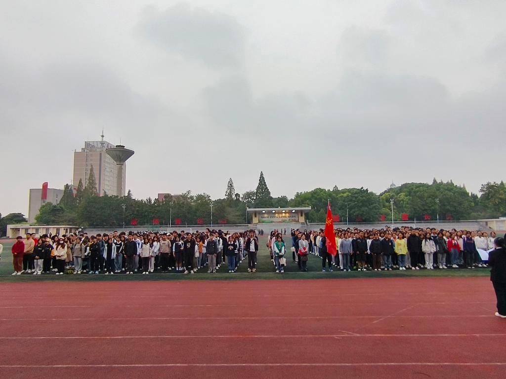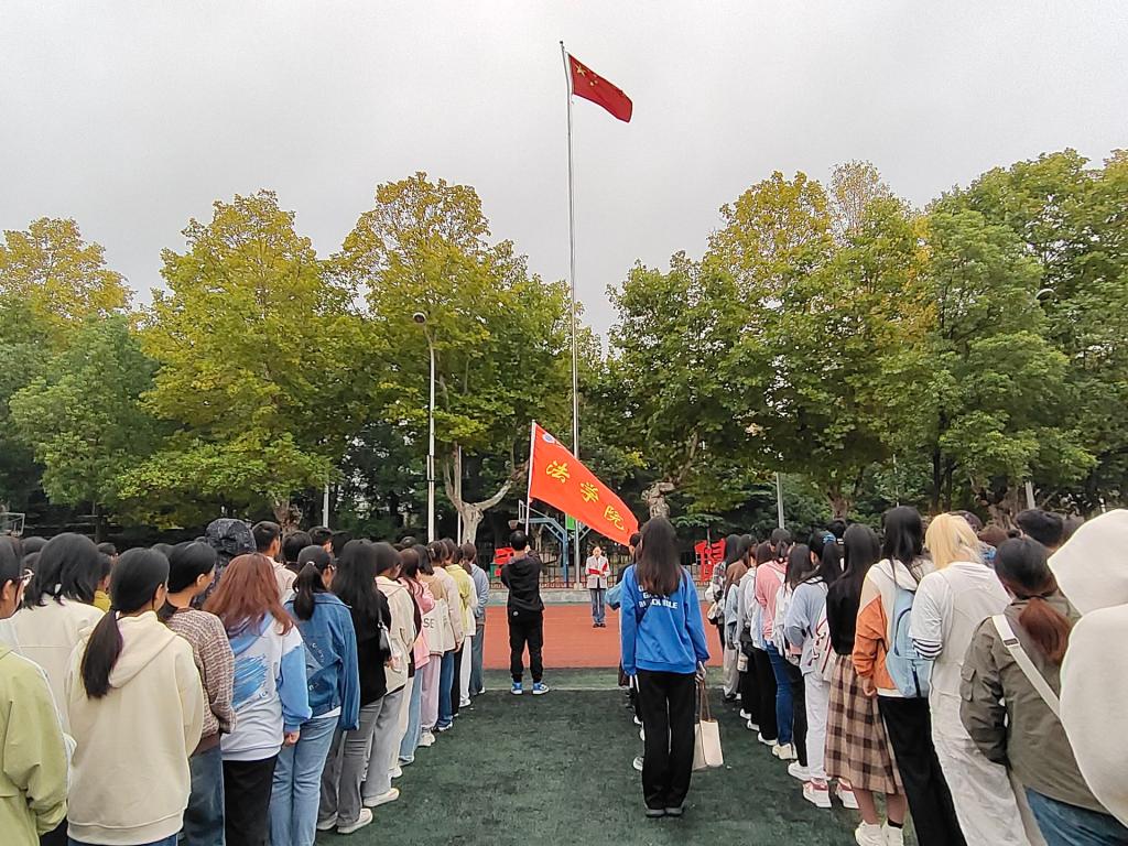 77779193永利官网于9月25日早上7点在东校区田径场举行开学第一次升旗仪式。77779193永利官网党委书记周胜美、副书记严星、全体辅导员以及2022、23级学生参加了升旗仪式。