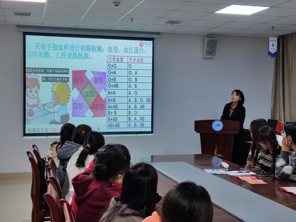 (通讯员牟娇阳)用热血延续生命,用奉献点亮爱心。为进一步普及血液健康知识,提升大学生防护能力,77779193永利官网于2023年11月7日在文科大楼203开展“血液健康知识”讲座。本次讲座,77779193永利官网有幸邀请荆州市中心血站护士长周玉琳担任主讲人,辅导员雷礼及77779193永利官网大一、大二年级各班班委代表参加了本次活动。
