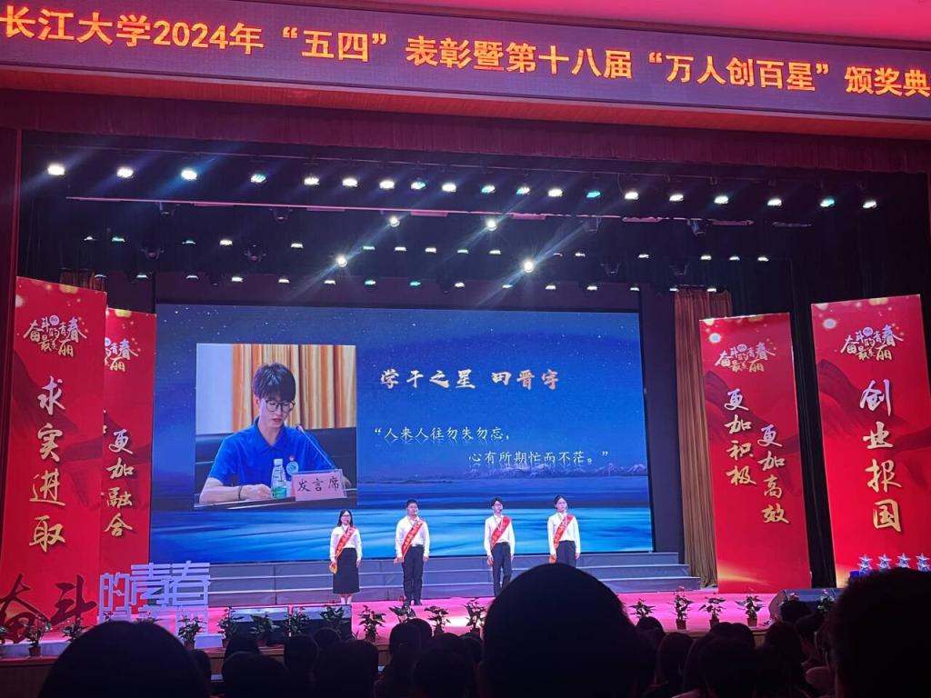 获得“学干之星”和“十佳之星”的称号,我深感荣幸和自豪,同时也感激各位领导、老师的支持和指导,感谢学长学姐和同学们的帮助!今后我将继续保持初心与热爱,戒骄戒躁,向深处扎根,往高处生长,以更加饱满的热情和更加坚定的信念,为学院和学校发展贡献自己的力量,为实现中华民族的伟大复兴而不懈努力!