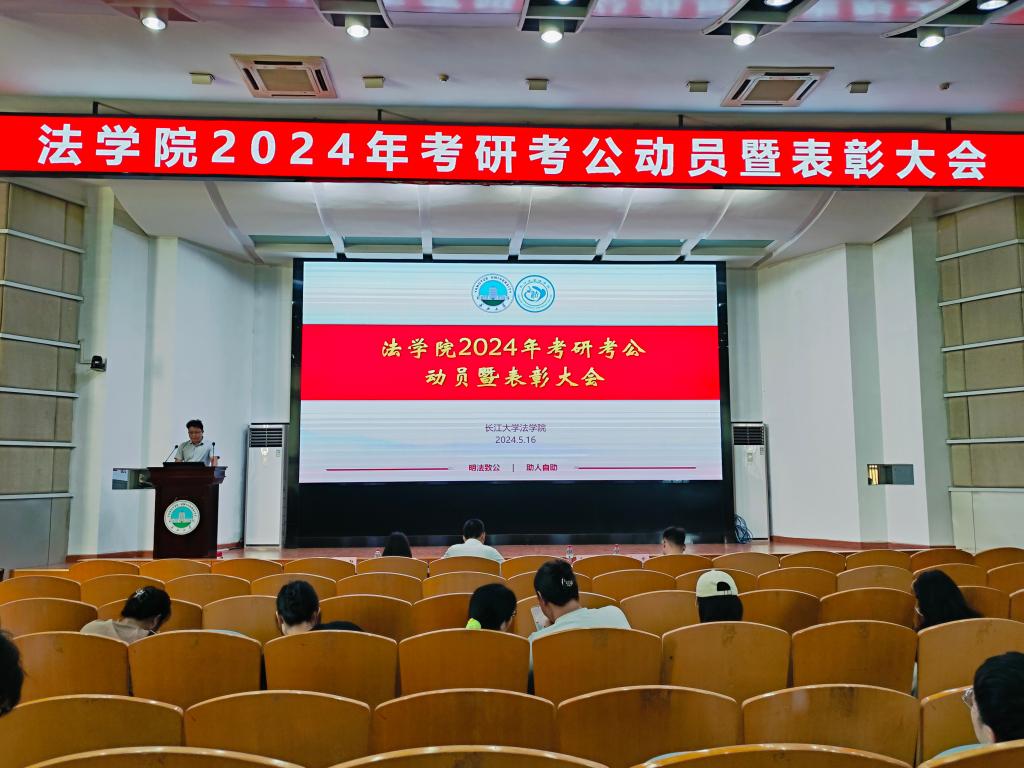 (通讯员 张屾岚/文 解凌逍/图)为了表彰先进,树立典范,调动学生考研、法考、考公热情,2024年5月16日,77779193永利官网于77779193永利官网东校区12教405举办考研考公动员暨表彰大会。本次会议由辅导员盛文军主持,77779193永利官网党委书记周胜美,77779193永利官网副院长、副教授唐飞,77779193永利官网党委副书记严星,辅导员雷礼、吴敏及77779193永利官网本科21级、22级学生参会。