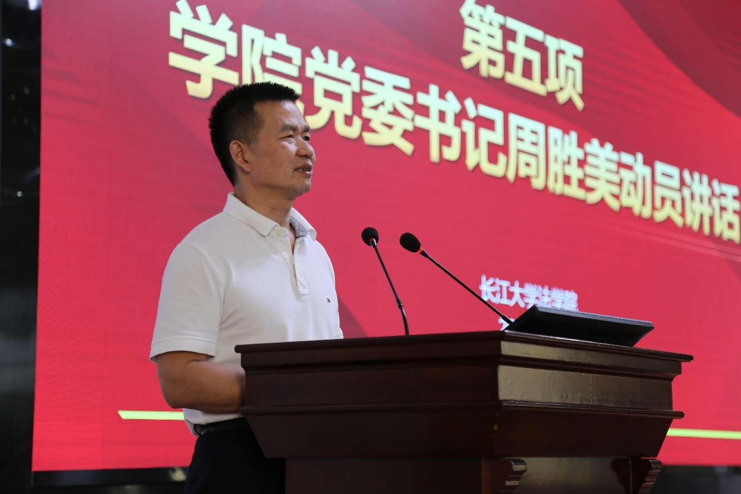 颁奖仪式后,院党委书记周胜美进行动员讲话。他强调学生应秉持谦虚谨慎的学习态度,不断思考未来规划,并准确评估自身实力。周书记指出,大学四年的核心目标是提升就业竞争力,学生应注重个人内在与外在的全面提升,准确了解并评估自己,不断完善不足之处。同时,他也积极倡导学生多思索考公、考编和法考等多元化发展路径。