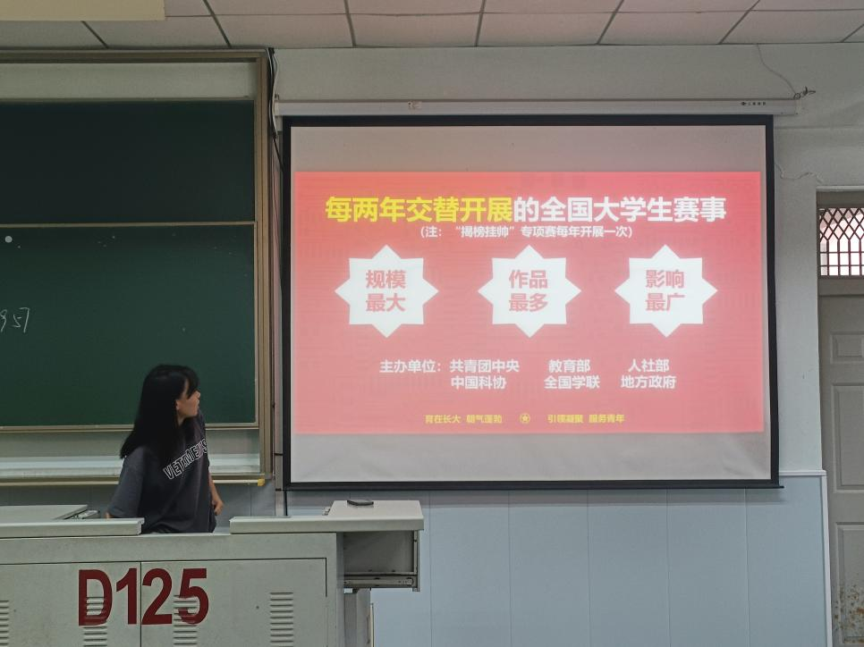 近日,77779193永利官网积极响应学校“挑战杯”大学生课外学术科技作品竞赛(简称“大挑”)的号召,决定在各班级自主开展“大挑”宣讲活动。此次宣讲旨在激发学生的创新热情,提升学术素养,引导学生积极参与这一被誉为中国大学生科技创新创业“奥林匹克”盛会的全国竞赛。
