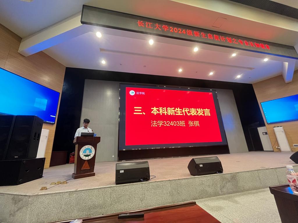 在奏唱国歌之后,杜厚扬为新生们详细介绍了法学专业的课程学习方法、就业前景等。其次,朱帅通过生动的案例和详实的数据,展示了社会工作专业在促进社会和谐、服务人民群众方面的独特价值和广阔前景。接下来,校友张星结合自己丰富的法律实践经验,为新生们传授了宝贵的法律实务知识和职业发展建议。