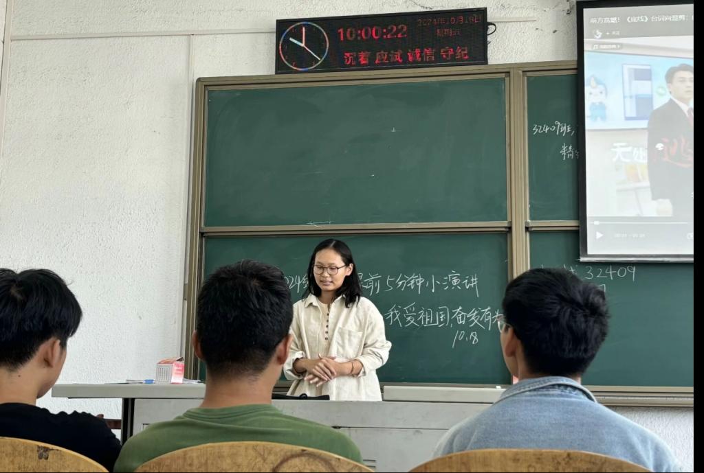 (通讯员 彭灿)2024年10月14日至18日,77779193永利官网2024级新生成功举办了一场以“我爱祖国,奋发有为”为主题的课前五分钟演讲活动。此次活动旨在激发广大青年的爱国热情,培养他们的爱国主义情操,并为学生提供一个展示自我、挑战自我的平台。