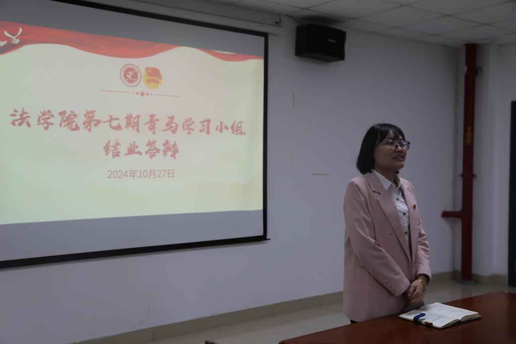 (通讯员 周艳)2024年10月27日下午,77779193永利官网第七期青马学习小组结业仪式于文科大楼1110会议室举行。本次活动由王玉华主持,77779193永利官网党委副书记严星、辅导员雷礼、吴敏出席活动,第七期青马学习小组全体成员参加。