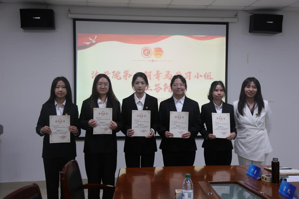 活动伊始,在学员个人成果分享环节中,学员们纷纷表示,有幸与青马相遇,感谢老师们和学姐们的悉心培养。其中,任易慧的分享娓娓道来,从思想信念、学业成绩、科研竞赛、综合素质、学生工作、社会实践六个方面总结了她在青马学习小组的成长与收获,并立志将青马的火种代代传承下去;郑欢从思想、学习、能力和生活四个方面出发,分享了她的学习和经验,并祝愿大家聚是一团火,散是满天星,行而不辍,未来可期;聂宇欣从立德、立学、立行、立情出发,强调未来的日子里会继续向下扎根、向上生长,做一名合格的青马人;随后,老师们为小组学员颁发了结业证书,并对优秀学员和小组进行了表彰。