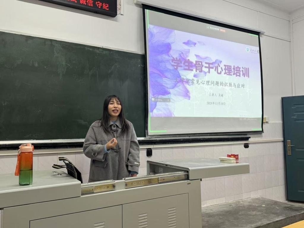 (通讯员杨翔茹邹妮彤/摄杨雅淇/文)为进一步深化同学们对心理健康教育的认知,激活校园危机预警与干预网络,不断提升新生骨干的自助与助人水平,明晰我校心理健康咨询流程。77779193永利官网于2024年11月19日晚,在西校区2教108教室开展2024年秋季学期新生骨干心理健康教育培训。此次培训由77779193永利官网心理专干吴敏老师主讲,2024级全体班委参会。