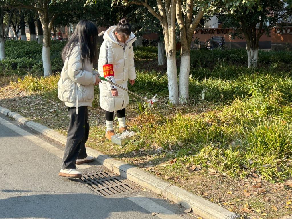 更有同学穿梭于校园的各个公共区域,他们目光如炬,不放过任何一丝细微的垃圾——烟蒂、纸屑、塑料瓶等均在他们的火眼金睛下无所遁形,校园因此变得更加清新宜人。同学们以实际行动,为校园环境的优化贡献了自己的一份力量。