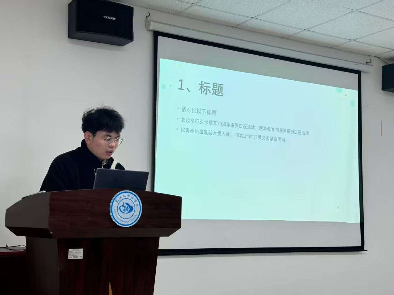 本次培训围绕新闻采编实务展开系统教学。在新闻写作模块,王泽宇通过剖析校级优秀稿件,深度解析新闻标题的价值传递技巧、倒金字塔结构的运用逻辑以及客观语言的锤炼方法。特别强调"五个W"原则在信息采集阶段的重要性,通过正反案例对比教学,参训人员直观掌握新闻稿撰写规范。