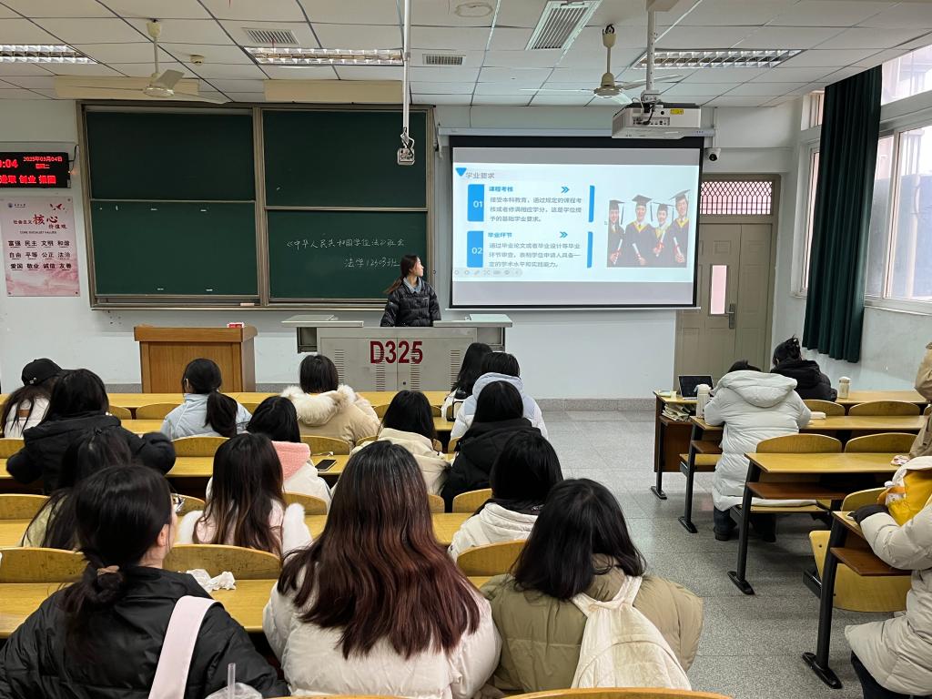 班会最后,各班强调,《学位法》的施行不仅为学位授予提供了坚实的法律保障,也为学生的学业规划指明了方向。呼吁全体同学以法为鉴,严格遵守学术规范,积极行使法律赋予的知情权、申诉权等各项权益。未来,学院计划通过模拟学位评审、案例辩论等一系列活动,进一步推动《学位法》的学习与专业实践相结合。