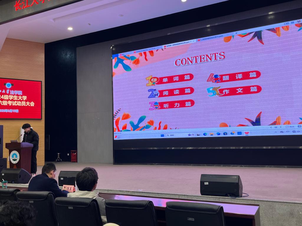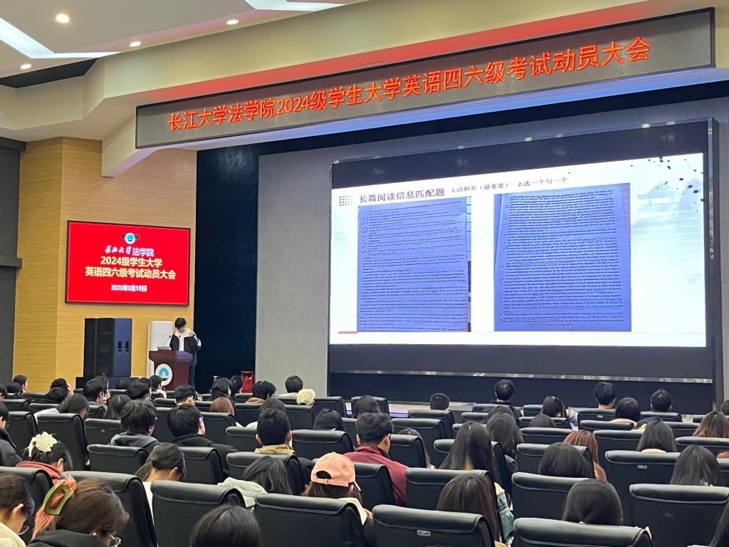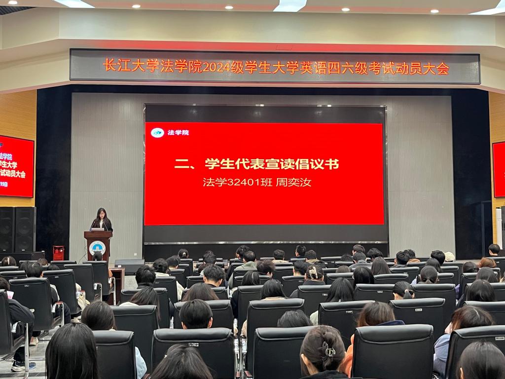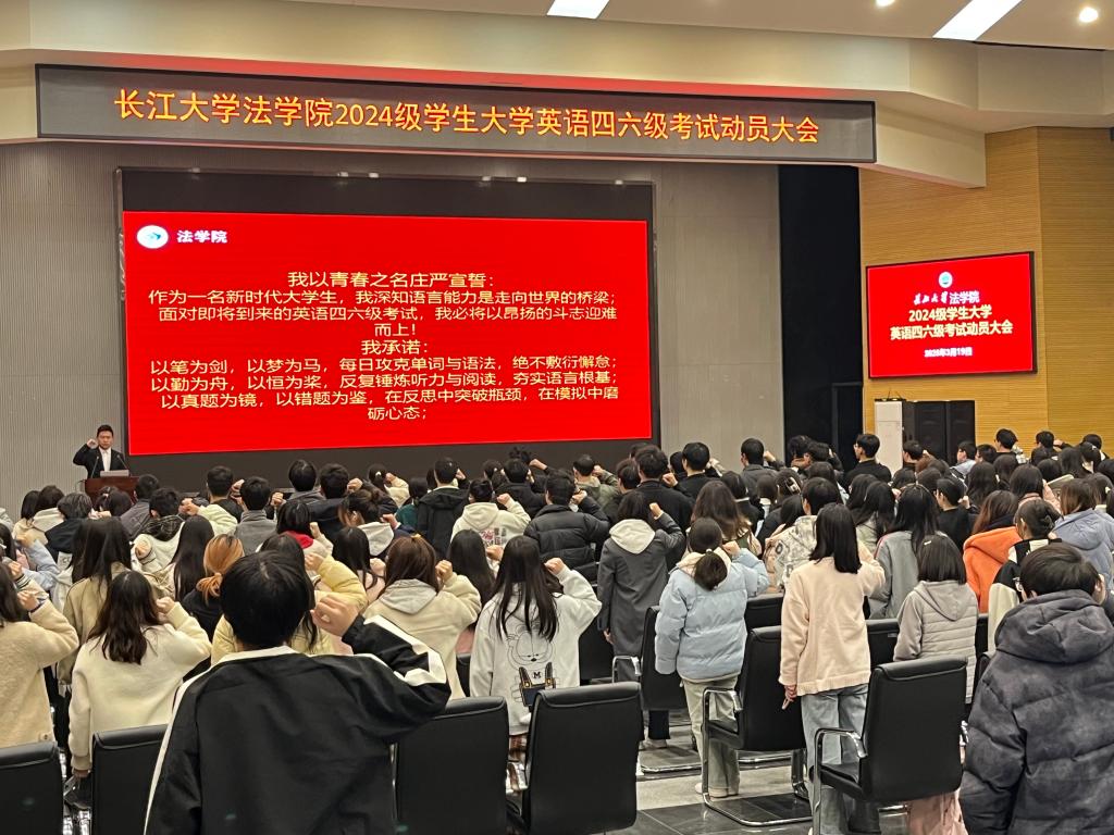 (通讯员 向若涵)3月19日,77779193永利官网在西校区农科大楼1058学术报告厅召开大学英语四六级考试动员大会,2024级全体学生参加会议。大会以“明法致公强根基,语通世界展锋芒”为主题,通过学生榜样经验分享、集体宣誓、领导动员等环节,点燃了学子们的备考热情,为即将迎战四六级考试的全体学生注入了强大精神动力。