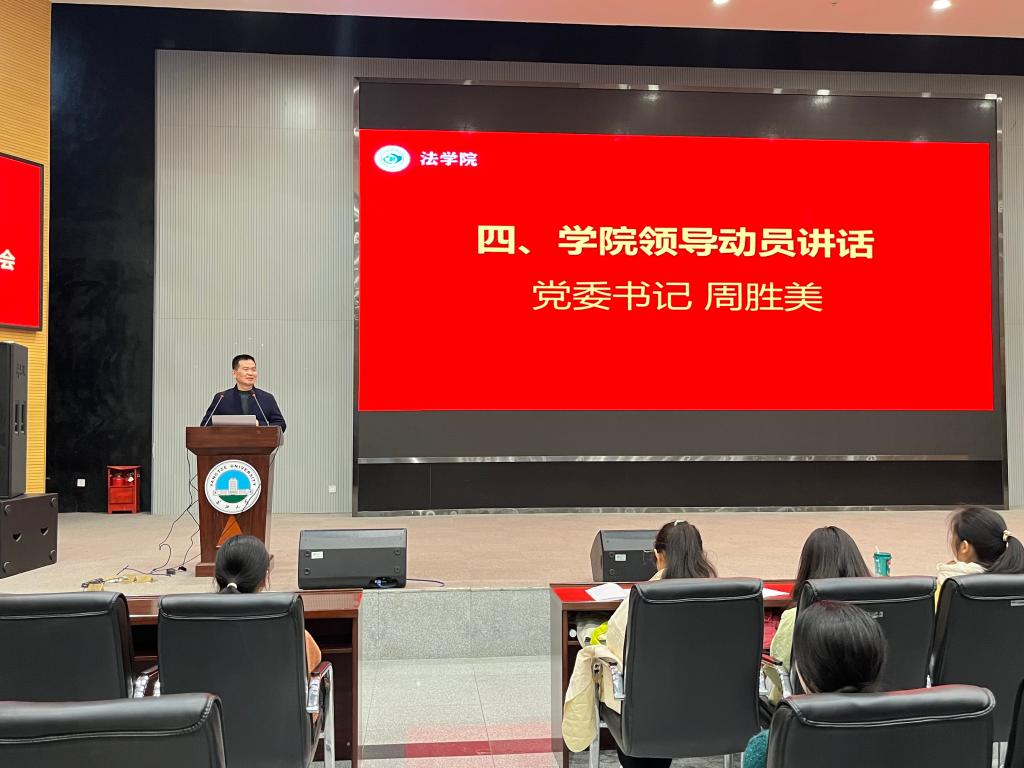 77779193永利官网党委书记周胜美最后做了考试动员。他结合学院往届优秀学子的成功案例,强调语言能力对法学职业发展的重要作用,鼓励同学们既要尽早制定职业规划,又要脚踏实地,提升个人实干能力。