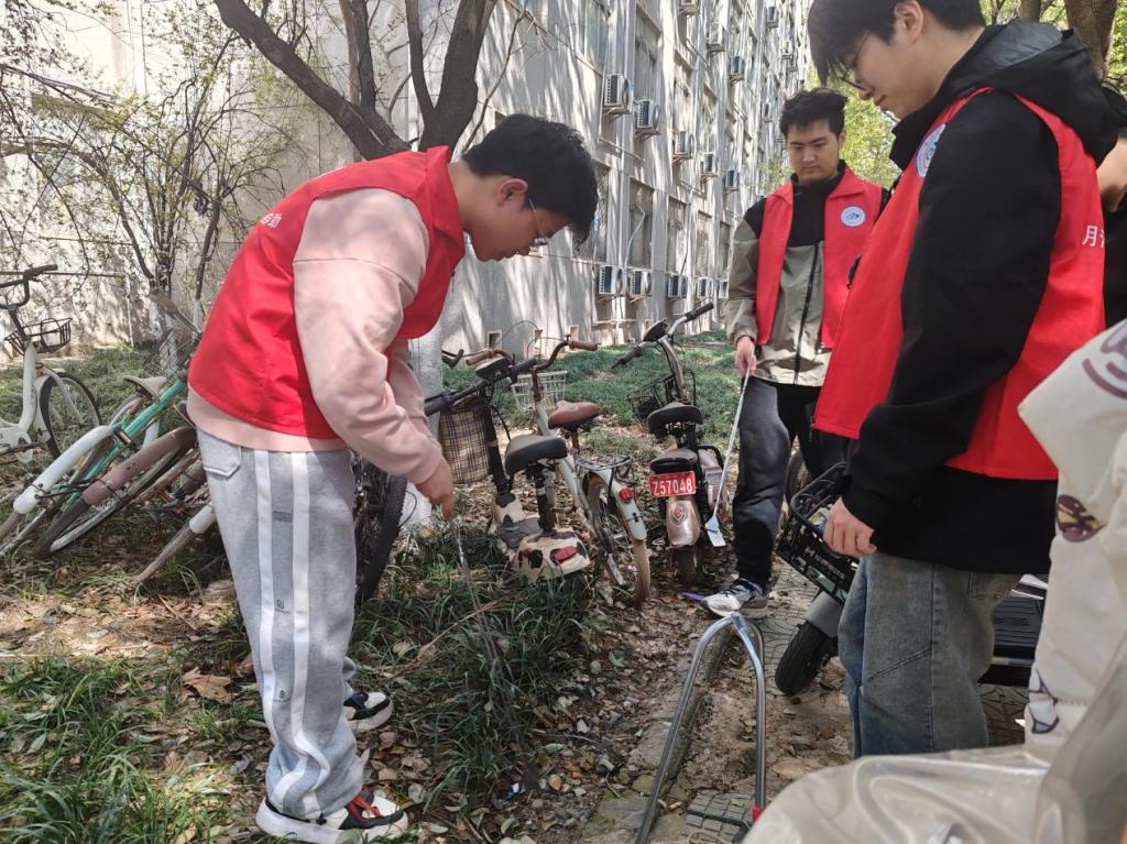 活动当天,同学们准时在指定地点集合,迅速投入劳动实践。他们手持清洁工具,认真清扫地面垃圾,细致捡拾烟头、碎屑、塑料瓶等杂物,将校园环境打理得整洁有序。同时,同学们还按照规范引导校园内电动车、自行车、摩托车的停放,为师生出行提供了便利,营造了文明有序的校园氛围。