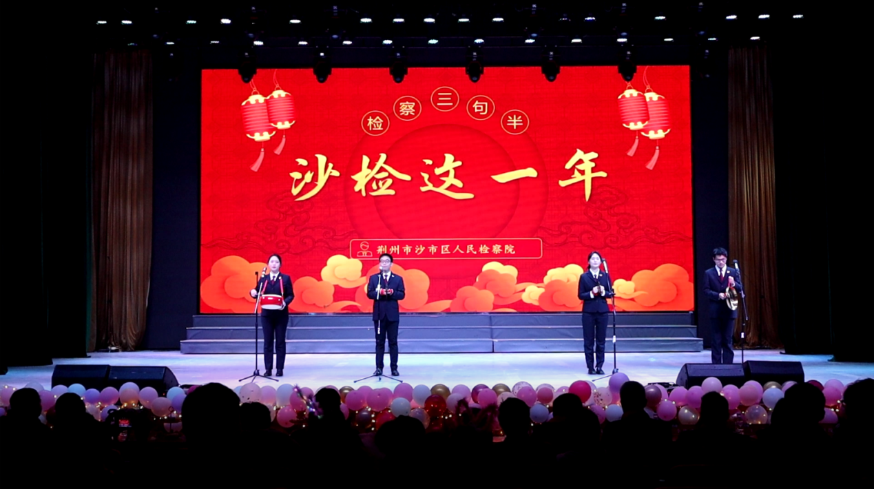 荆州市荆州区人民检察院带来的歌舞《青春向太阳》,洋溢着浓厚的青春气息,向大家传递了积极向上的工作生活态度;荆州市沙市区人民检察院的三句半节目《沙市检查这一年》,锣鼓声中以押韵的形式和幽默的话语向大家展示了他们这一年的工作内容与工作成果;荆州市荆州区人民法院的朗诵节目《法韵长歌护长安》,宣告了他们维护法律的坚定信念;荆州市沙市区人民法院的情景剧《永恒的信仰》,传递着他们无畏艰难险阻,坚守正义的初衷。