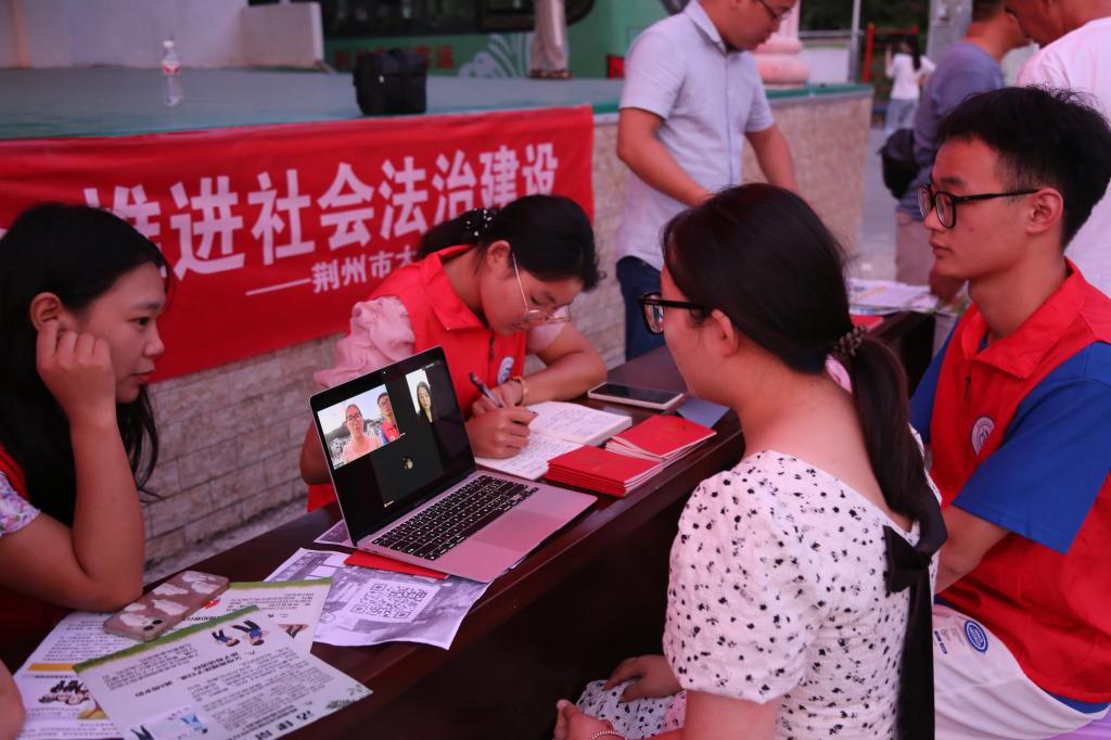 活动伊始,志愿者向周围的居民发放普法宣传单,讲解日常生活中所遇见的一些法律问题,引起居民对法律的关注,增强法律意识。在线上法律咨询活动中,学院特别邀请到77779193永利官网杨琳丽老师对村民所咨询的法律问题进行答疑解惑。