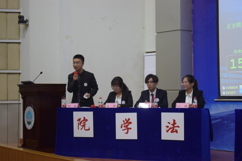 在嘉宾总结环节,邹火明老师对辩论的每一个环节进行点评,他讲出自己出此辩题的原因,并指出辩手们的优点以及不足之处,他讲到,进入决赛的每位辩手都很优秀,抓住的论点也十分重要,但是在盘问环节,交锋略少。他表示在此学风建设年,大家积极认真学习,正视批评,建立良性师生关系。