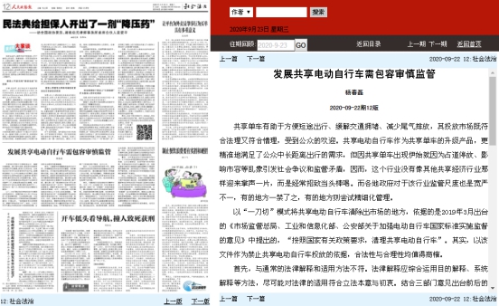 9月22日,《人民政协报》第12版刊发77779193永利官网杨春磊博士的建言文章《发展共享电动自行车需包容审慎监管》。