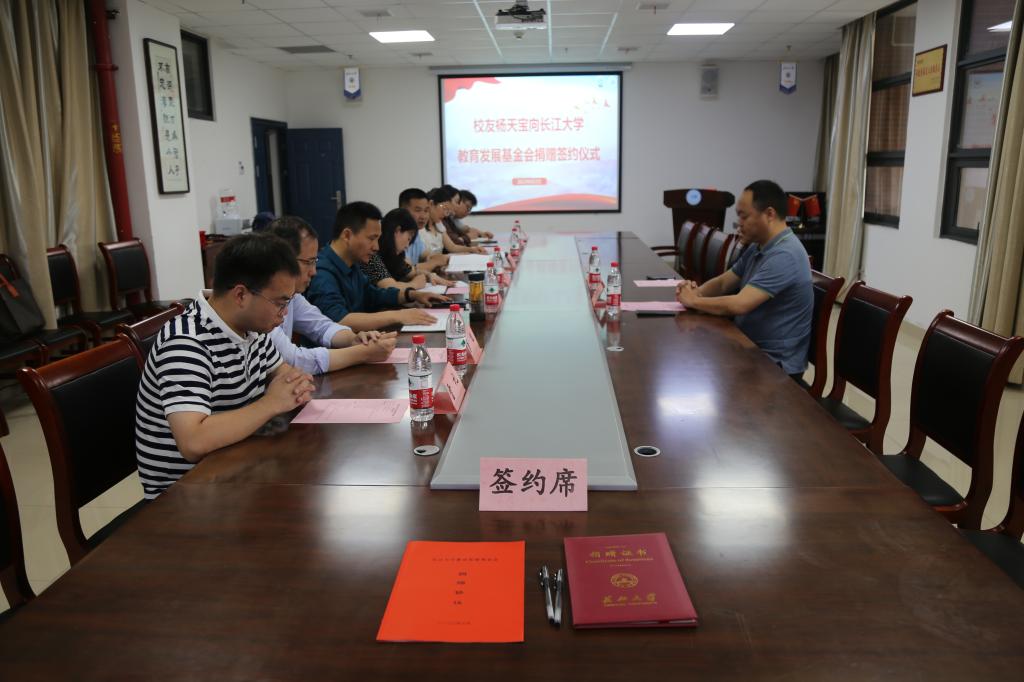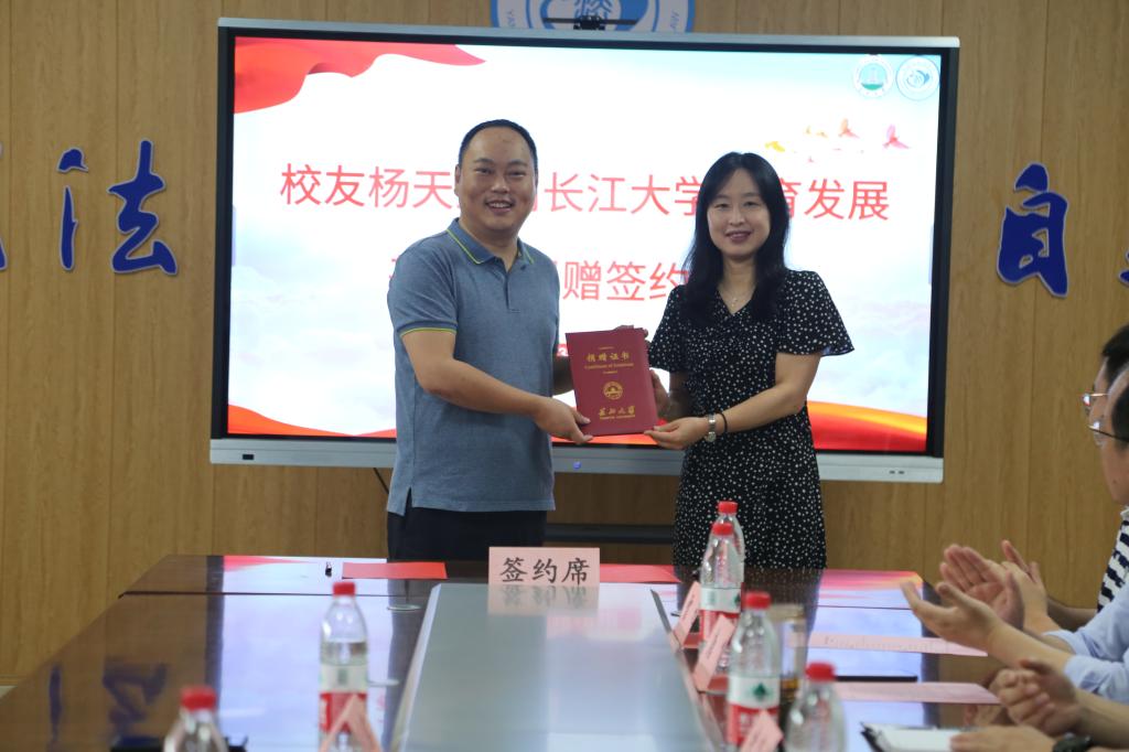 仪式上,周胜美和杨天宝签署捐赠协议,并代表学校接受捐赠。