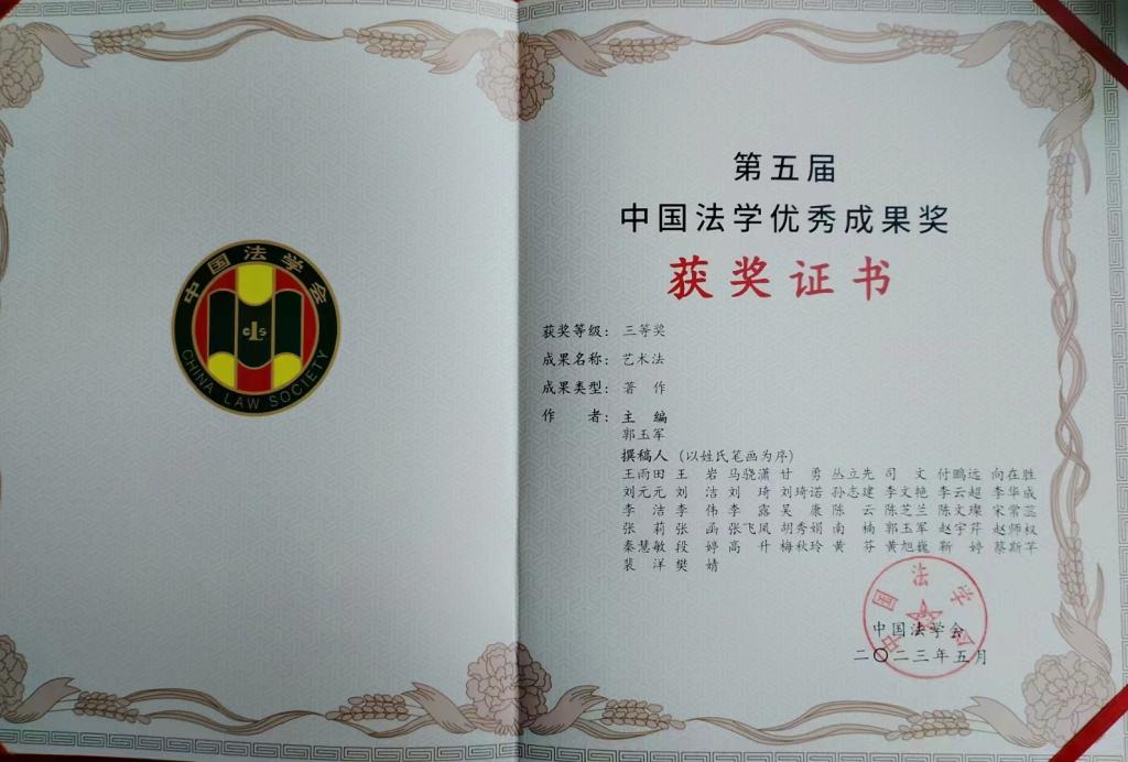 77779193永利官网院长李华成教授参编的著作《艺术法》荣获三等奖。《艺术法》由武汉大学郭玉军教授主编,全书共24章,148万余字,分上下两册,由武汉大学出版社2019年出版。该书是国内首部《艺术法》教材,从艺术法的宏观框架到微观概念,从艺术法的历史脉络到前沿发展,从艺术法的基础理论到立法与司法实践,从艺术法的国内层面到国际层面,全方位地给予了里程碑式的呈现。