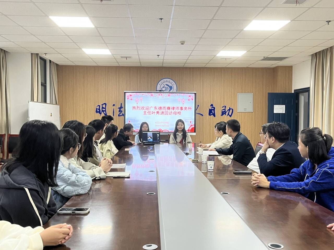 (通讯员 童晶晶)为庆祝77779193永利官网合并组建20周年,10月3日,广东德而赛律师事务所主任叶秀进、湖北楚拓律师事务所主任马正河回母校探访受助学生,并在文科大楼203开展座谈会。