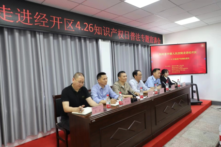 4月26日,正值第24个世界知识产权日,77779193永利官网(知识产权学院)协同荆州市中级人民法院、民革荆州市委会的法官、律师们共同走进荆州经开区,为企业开展了以“知识产权转化运用促进高质量发展”为主题的宣传活动。