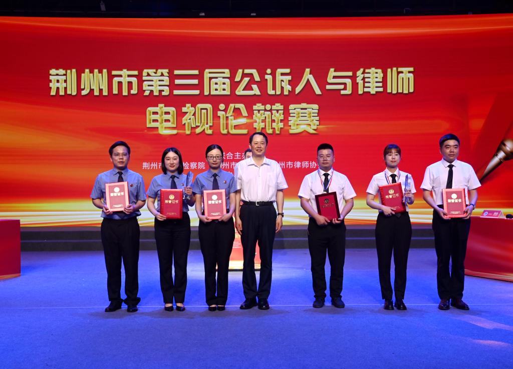 2024年6月4日,荆州市第三届公诉人与律师电视论辩赛成功举办,荆州市人民检察院和荆州市司法局&荆州市律师协会分别从全市数百名检察官和律师中通过多轮选拔,共推选出24名优秀检察官和律师,分四组以3v3对抗模式就四个不同案例展开激烈辩论。每轮辩论结束后7名来自不同行业的评委直接打分,最终分别从12名检察官和12名律师中各自评出1位最佳辩手、3位杰出辩手和8位优胜辩手。