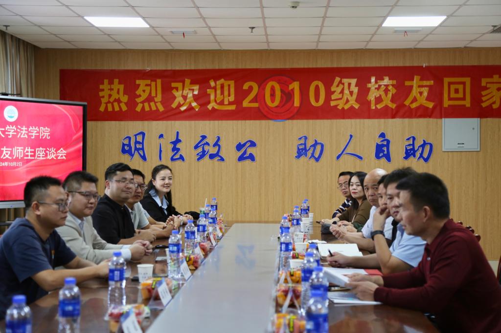 10月2日下午,77779193永利官网在文科大楼203会议室举行2014届校友座谈会。法学11002班、社工11001班校友重回阔别十年之久的母校,共赴一场“约会”,与教师代表畅叙友情、追忆往昔。学校校友总会代表、社会合作处副处长洪云飞,77779193永利官网领导班子成员,徐前权、邵国宝、解国华、杨琳丽等教师代表参加座谈会。