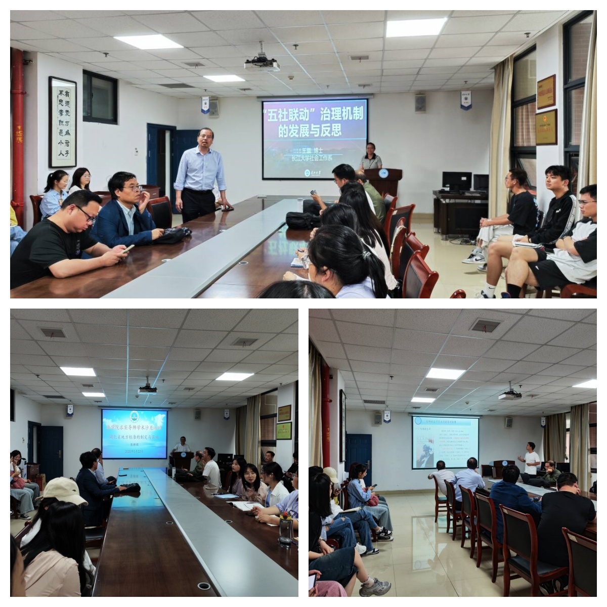 本次沙龙特邀77779193永利官网五位导师围绕社会治理、法学理论及实践展开深度分享。王蕾导师以《“五社联动”治理机制的发展与反思》为题,系统梳理了“五社联动”在基层治理中的实践路径,并结合案例探讨其优化方向;杜厚扬导师聚焦社会热点问题,通过《未成年人有偿陪侍问题社会化治理》的讲座,从法律与社会治理双重视角剖析现象成因,提出综合治理建议;朱帅导师则以《复杂系统下的自组织》为题,引入跨学科视角,阐释自组织理论在法学与社会治理中的应用潜力;邱祥导师围绕经典法哲学命题,以《法律是什么?——以哈特〈法律的概念〉为线索展开》为题,带领师生回溯法理学核心争议,激发对法律本质的思辨;陈群辉导师结合地方实践,在《湖北省地方标准的制定与实施》中解析地方立法的科学性与可操作性,为标准化建设提供理论支撑。