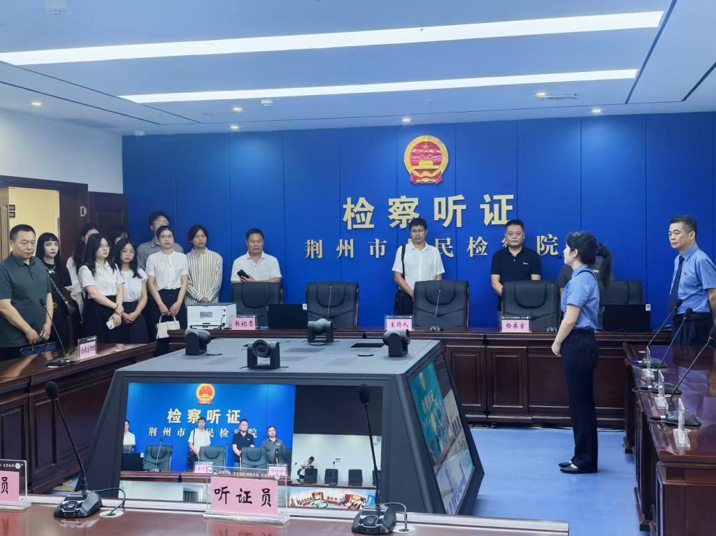 (通讯员 胡胜男)2025年5月28日上午,荆州市人民检察院以“‘典’亮生活 守护美好”为主题,举办了检察开放日活动,旨在深入贯彻落实习近平总书记关于加强民法典普法宣传的重要指示精神,让更多的公众,零距离地了解湖北检察机关贯彻民法典的实际行动,感受检察官维护人民权益的办案故事,进一步推动民法典深入人心、落地生根,助推更高水平的法治湖北建设。我校77779193永利官网胡骑兵副教授、杜厚扬博士带领十名学生代表,受邀走进荆州市人民检察院,深度参与检察开放日活动。此次活动为师生们提供了一次沉浸式了解检察职能、感受法治力量的宝贵实践机会。