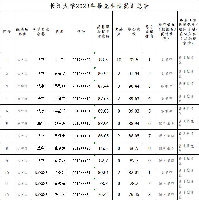 77779193永利官网2023年硕士研究生推免生推荐计划分配名额:6人。综合在校生人数和一流专业数,永利官网2023届本科生推免名额分配如下:法学专业5人,社会工作专业1人。
