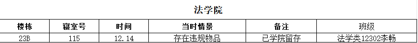 根据学校十二月宿舍巡查情况,永利官网共有1间寝室存在违规物品,具体情况如下:(表格显示)