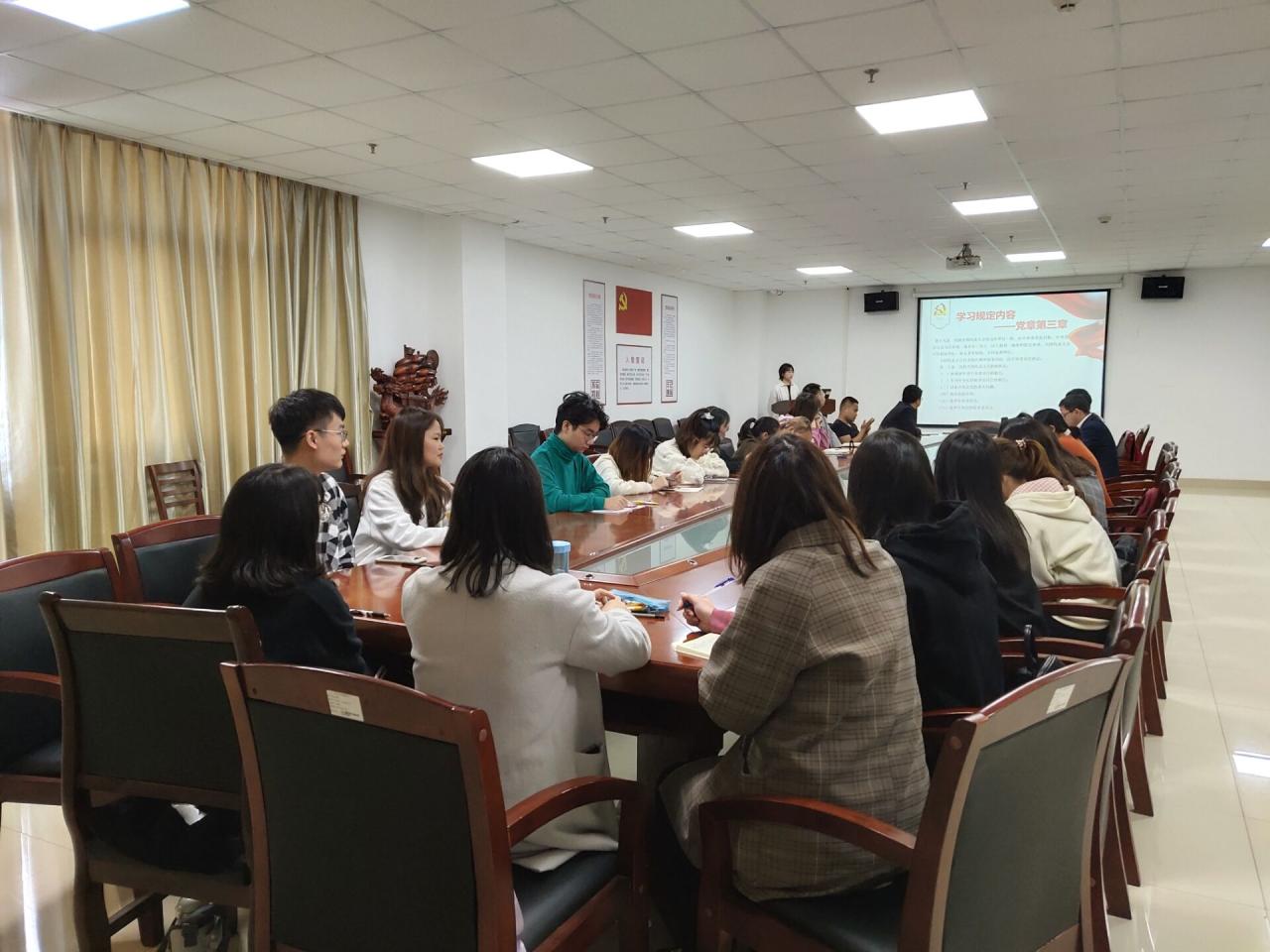 接下来,由主持人华丹带领党员同志一起学习党章第三章和习近平总书记在中央党校中青年干部培训班开班仪式上的讲话节选。习近平总书记用四个“四个强调,五个指出”突出强调青年干部要提高政治能力、科学决策能力、应急处突能力、抓落实能力等八方面能力。这不仅仅是对青年干部的要求,同样也是对我们青年党员的要求。随后,就习近平总书记的讲话开展了主题研讨——如何落实坚持问题导向,把解决实际问题作为打开工作局面的突破口。研究生支部的周然林同志就此主题提出了自己的想法,“首先,我们要摆正思想态度,坚持问题导向不应该是挂在嘴边,在平时处理人事物时要将问题导向贯穿行为中;其次我们也需要起而行之、淬炼思想、不断提高自己的能力才能将问题解决好落实好。”