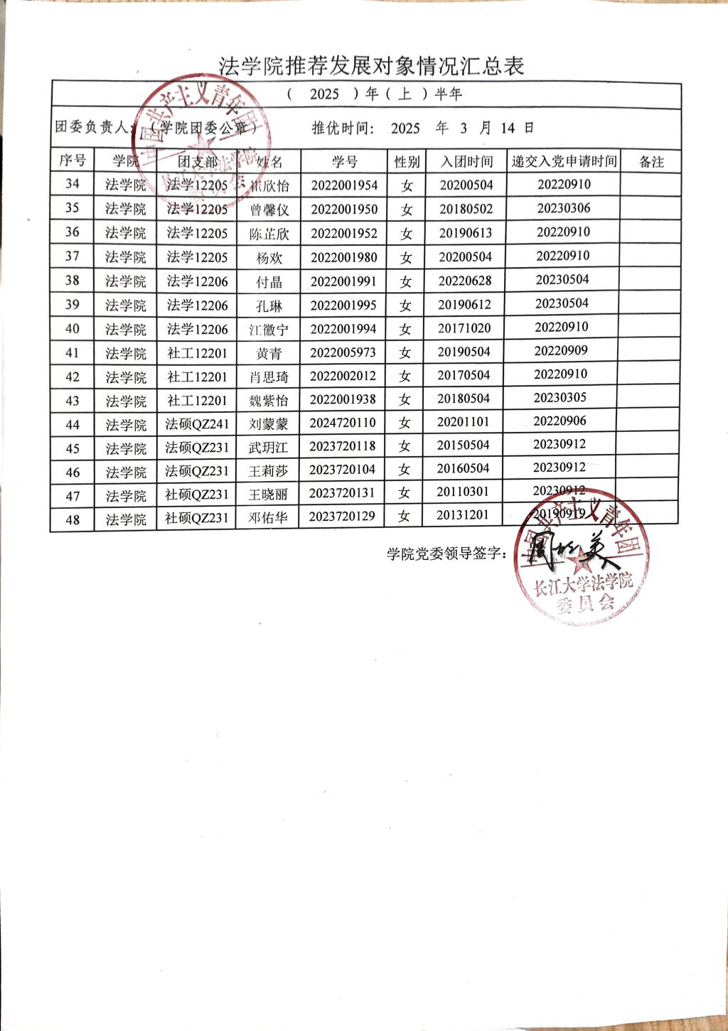 经党员和群众推荐、团组织推优,支部委员会(不设支部委员会的由支部大会)研究决定,报学院分团委审核同意,拟推荐刘澜溪等48名同志为发展对象人选,特在全院范围内进行公示。
